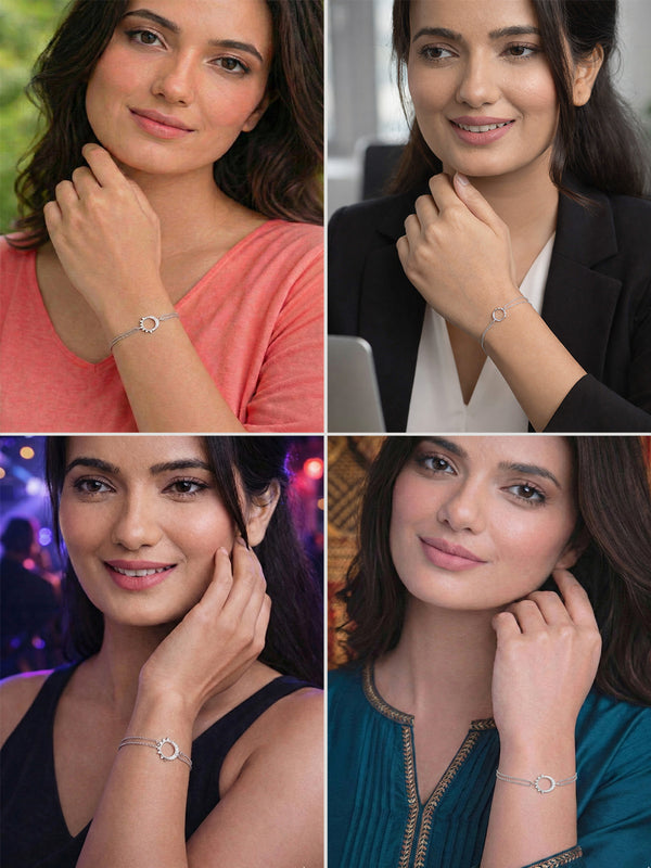 Size Adjustable Bracelets is made in pure 92.5 % Real Sterling Silver. 925 stamp will be on every product. Swiss Zirconia - As brilliant As Diamond. Sparkle of our specially cut zirconia is very much equivalent to Real Diamond and even professionals can not differentiate with naked eyes whether it is Zirconia or Diamond. 2 Microns Thick Nickel free Platinum Plating is done to give long lasting shine. Product comes in a very elegant gift box with CLARA Authenticity Card. Size of these Bracelets is easily adjustable. Any Women or Girl can wear these Bracelets without any issue of size and fit.